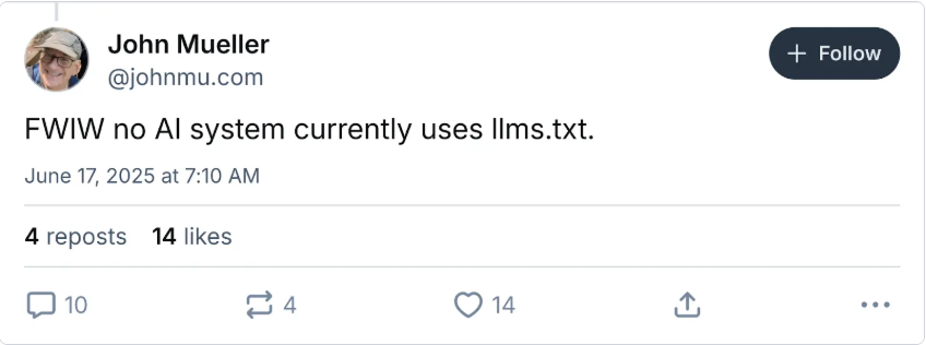 Utiliser llms.txt ne vaut probablement pas la peine pour le moment, sauf si vous êtes simplement curieux et souhaitez expérimenter.